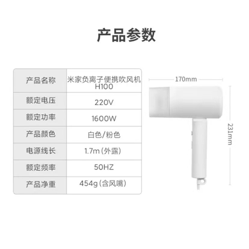 小米吹风机-H100 负离子护发